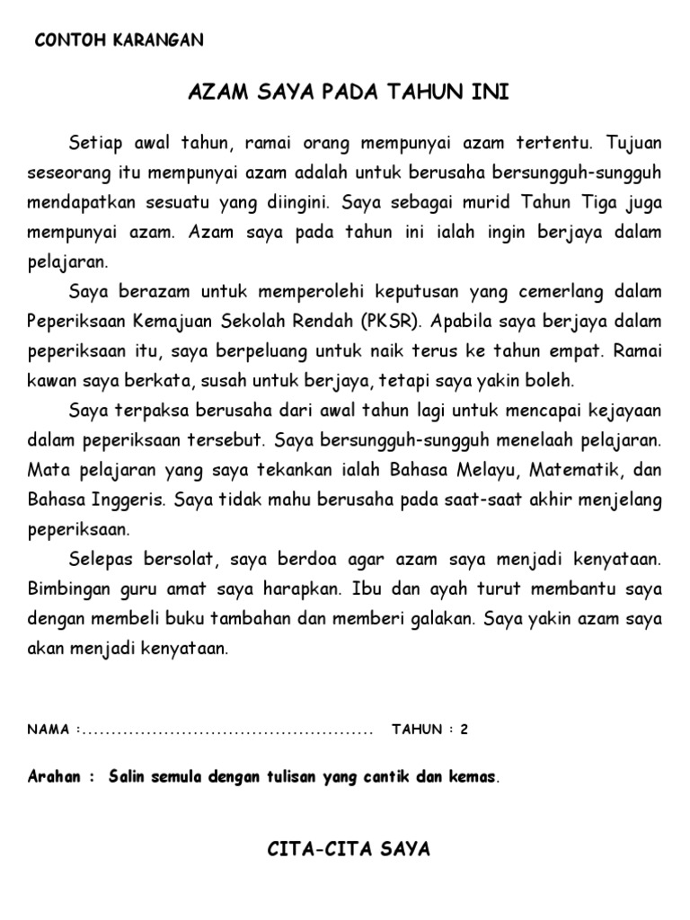 Contoh Karangan Azam Sekolah Rendah